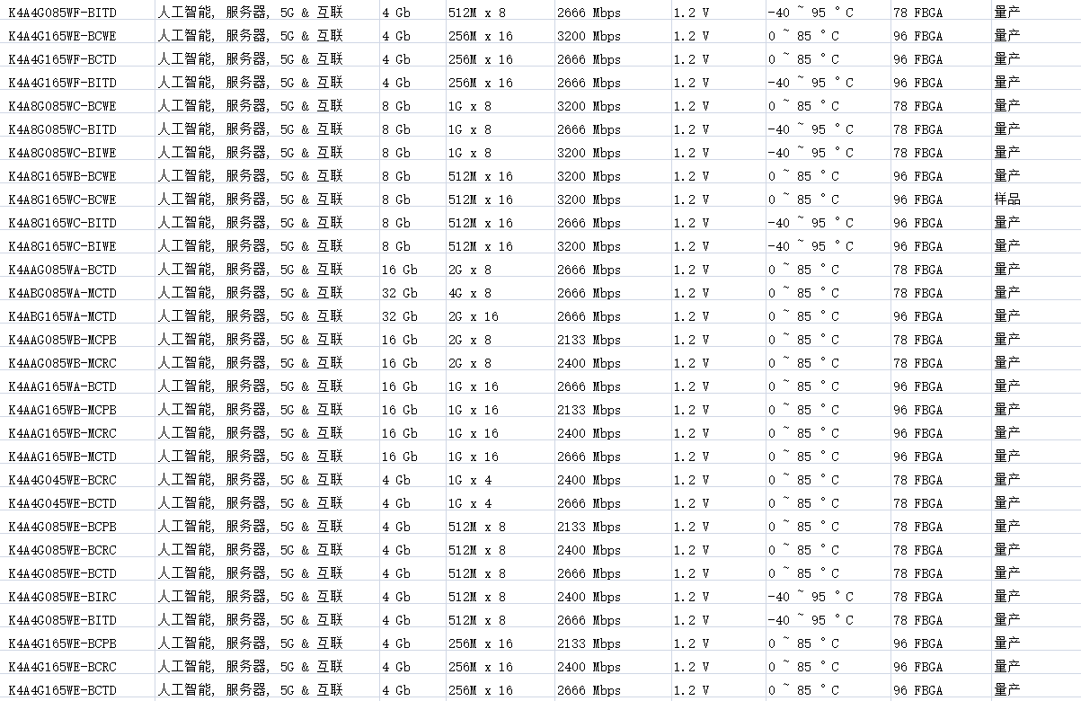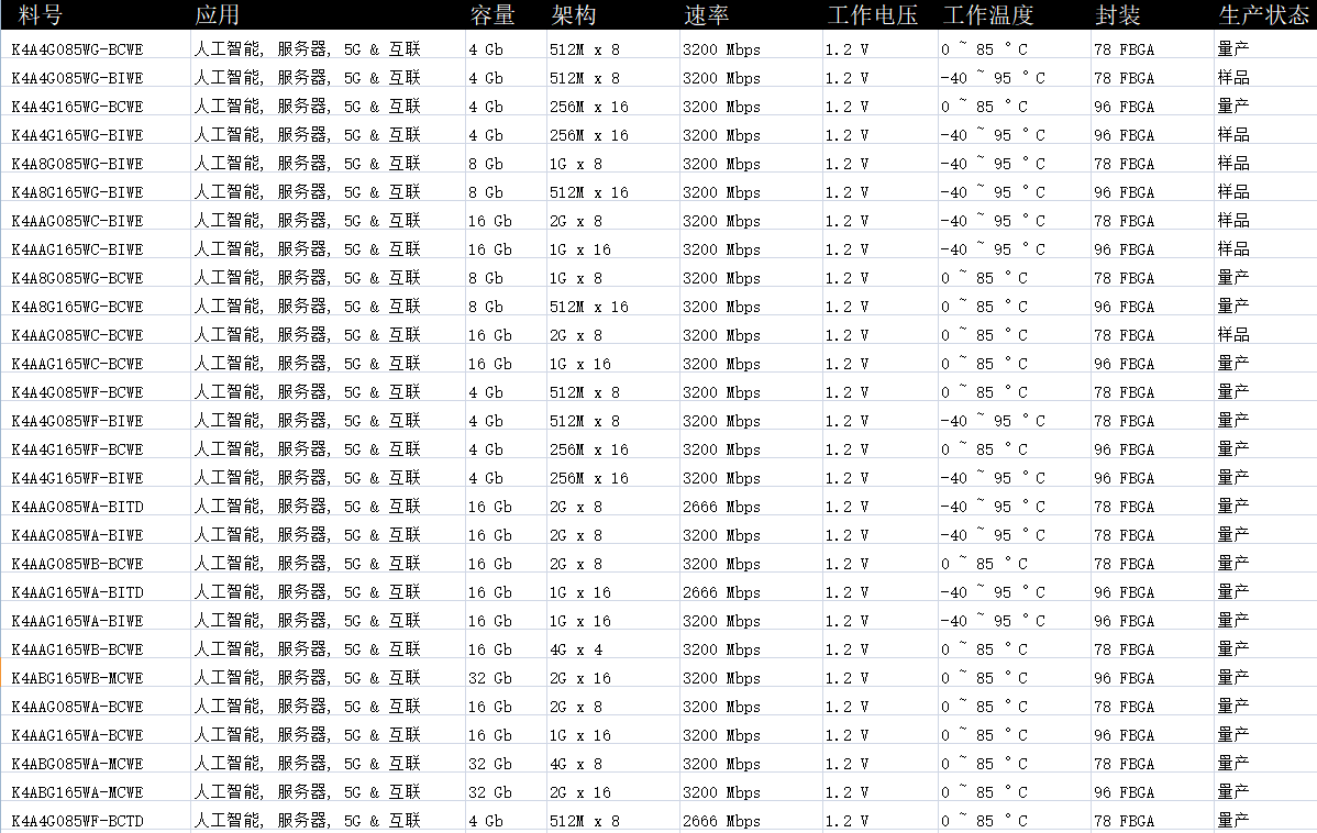 深圳市宏诺德电子科技公司代理三星半导体DRAM存储芯片主要产品:所有产品线支持原厂订购,并提供FAE技术支持